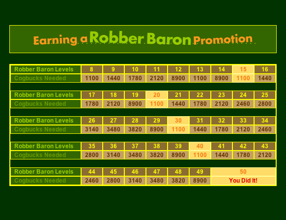 Robber Baron Promotion Laff Boosts earned at levels 15, 20, 30, 40 and 50!